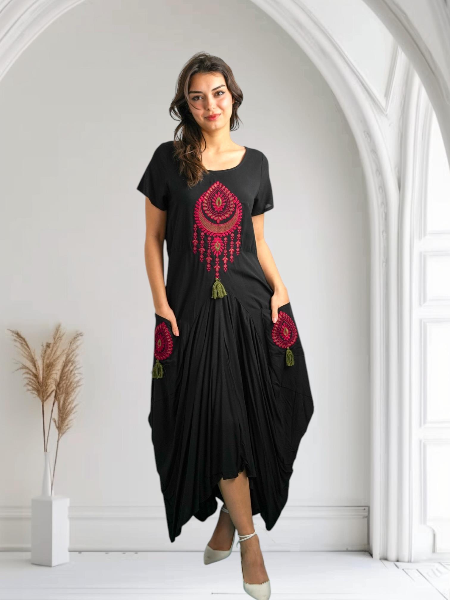 Black Embroidered Dress (D061)