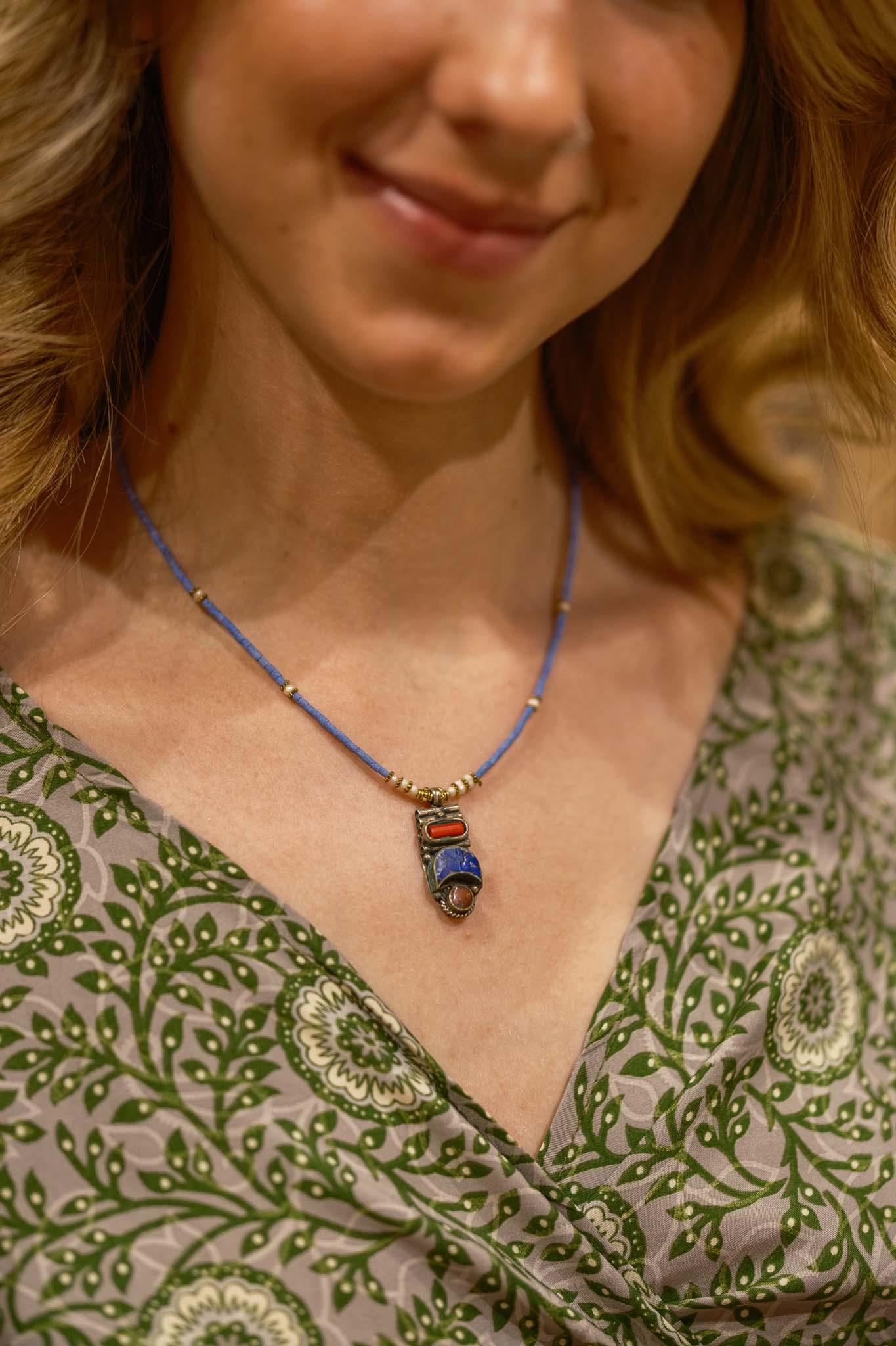 • 💎 Materyal: Lapis Lazuli, Mercan, Akik, Metal Ara Boncuklar, Etnik İşçilikli Pendant