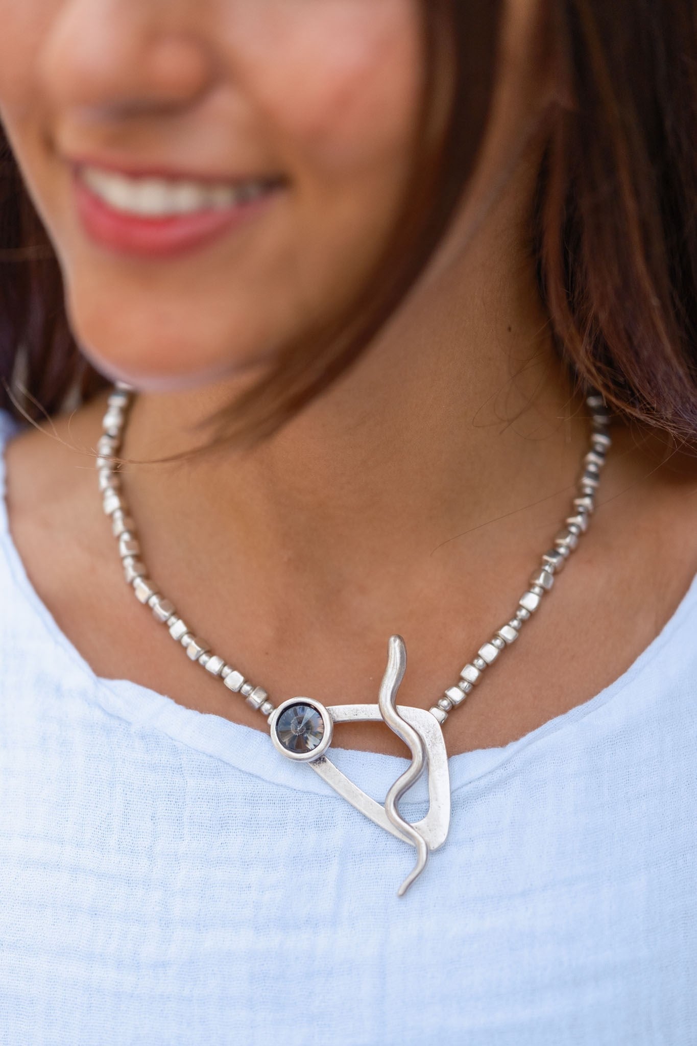 💎 Ürün Tipi / Model: El yapımı özel tasarım kolye 🧵 Malzeme: Zamak, Quvars doğal taş 🎨 Renk: Gümüş