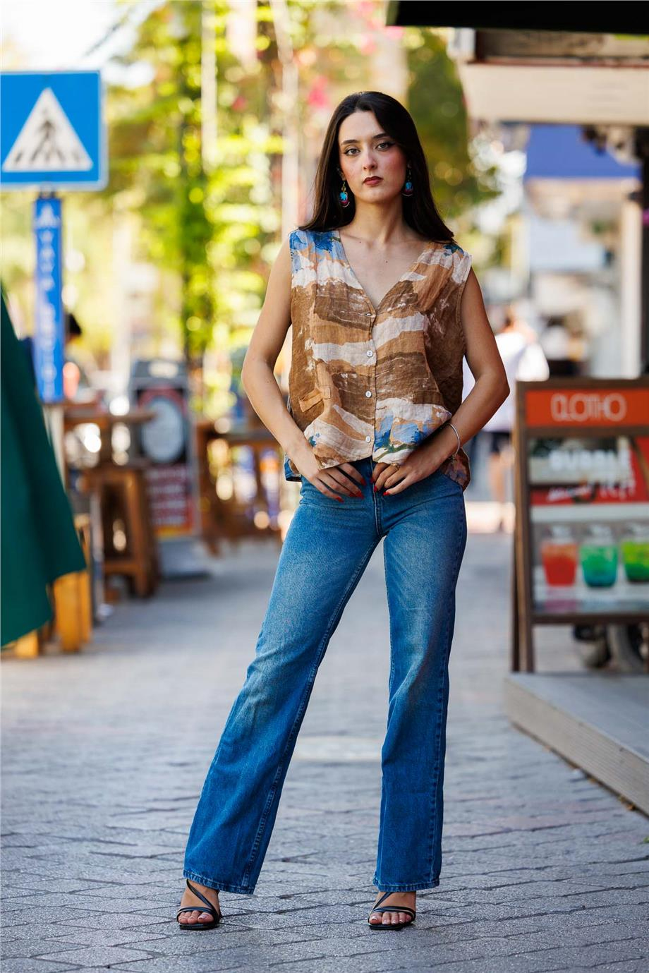 🤎✨ Kahverengi Düğmeli Keten Yelek
