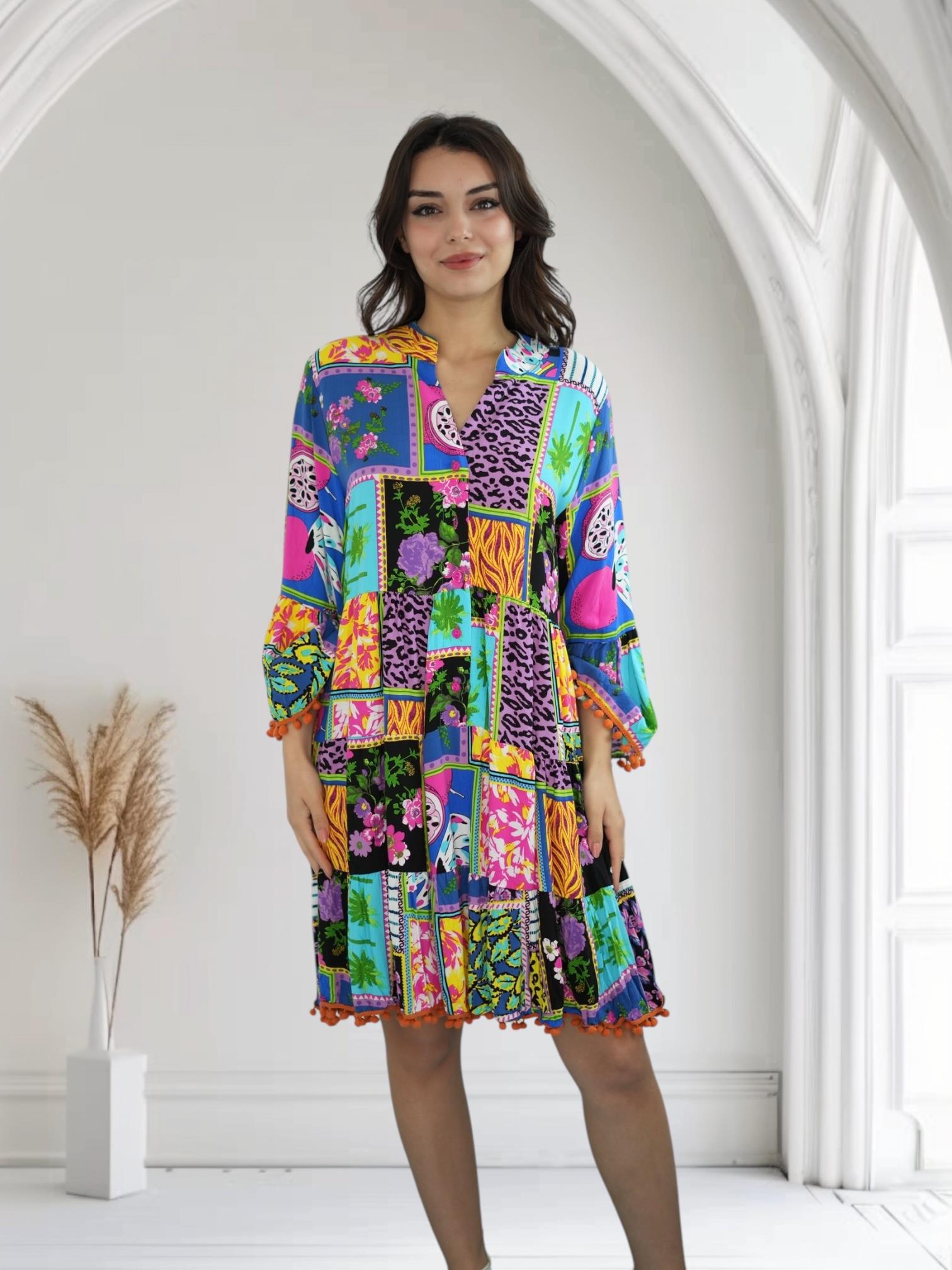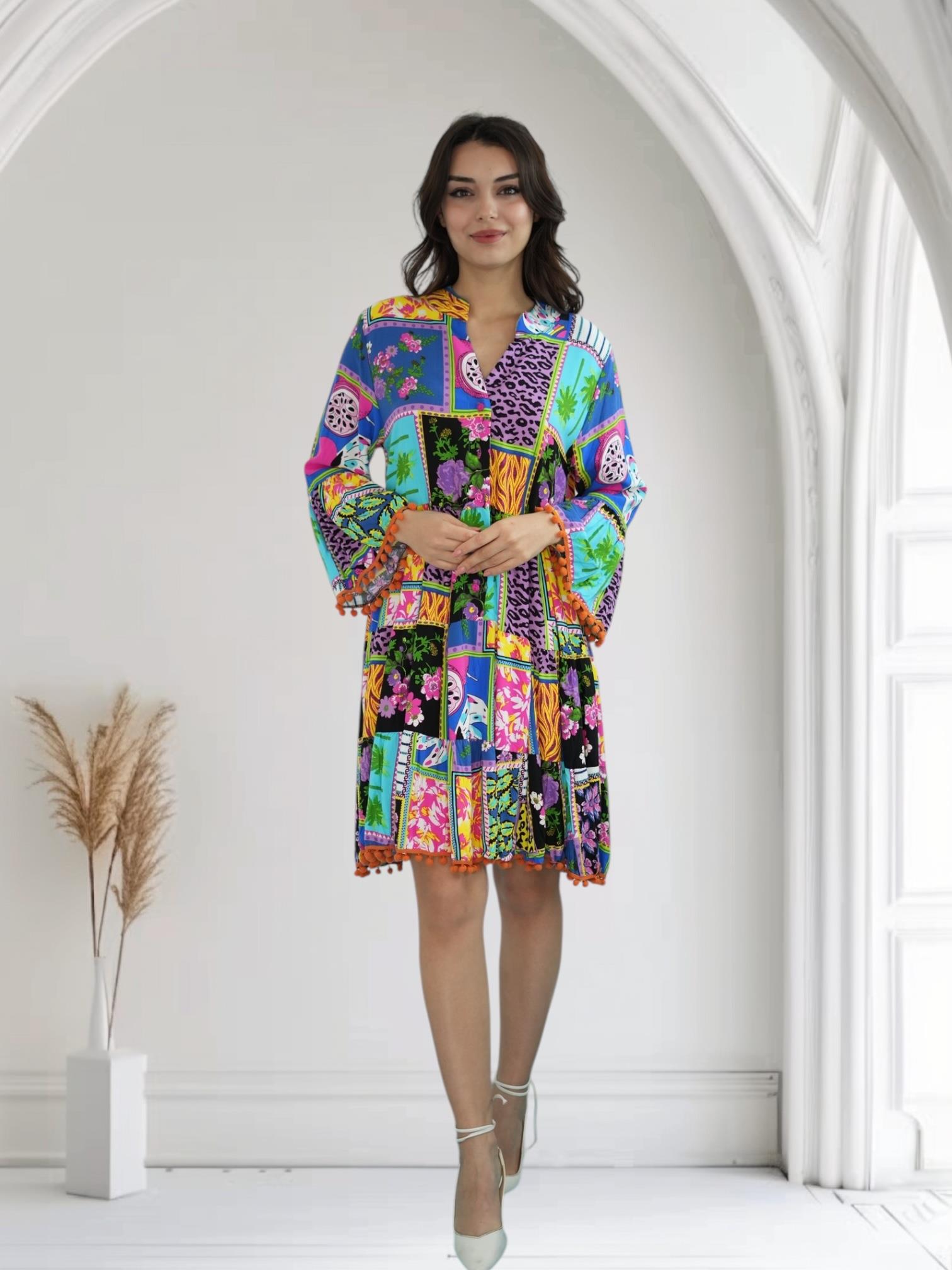 Mor Ponponlu Kısa Elbise (D049)