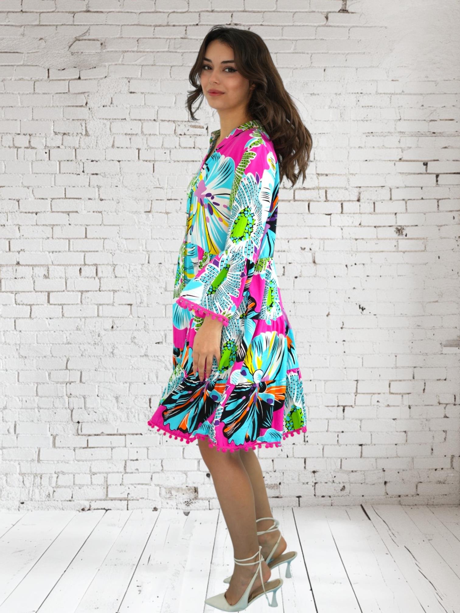 Pembe Ponponlu Kısa Elbise (D017)