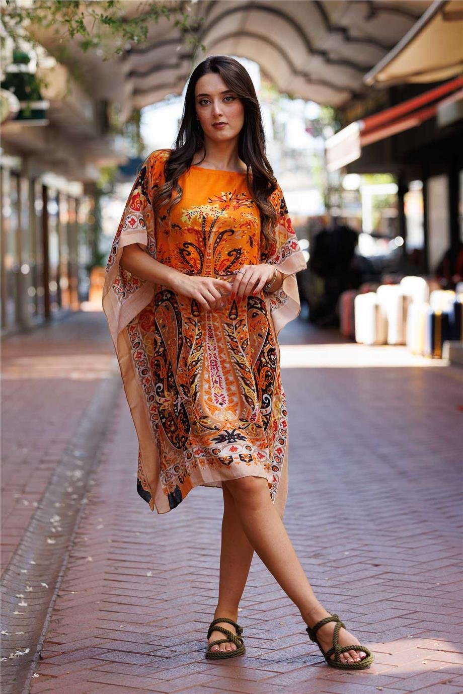 Turuncu Renk Çiçek Desenli Salaş Tunik