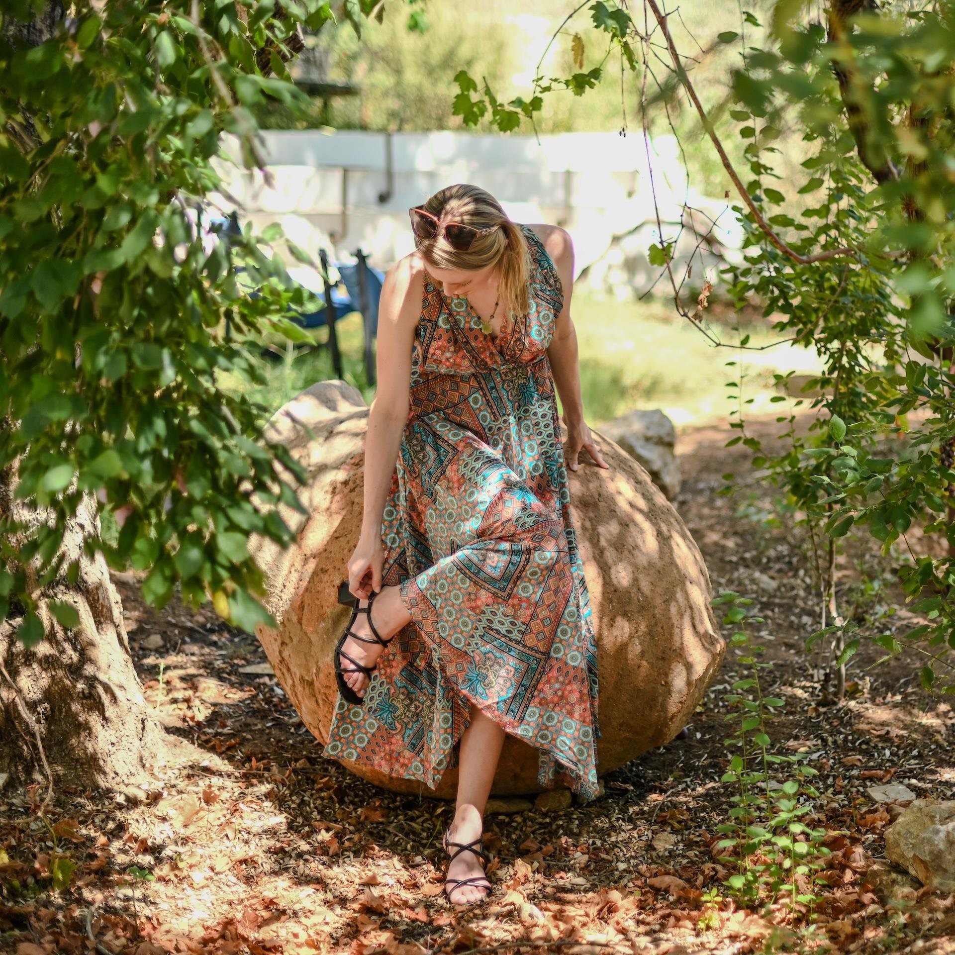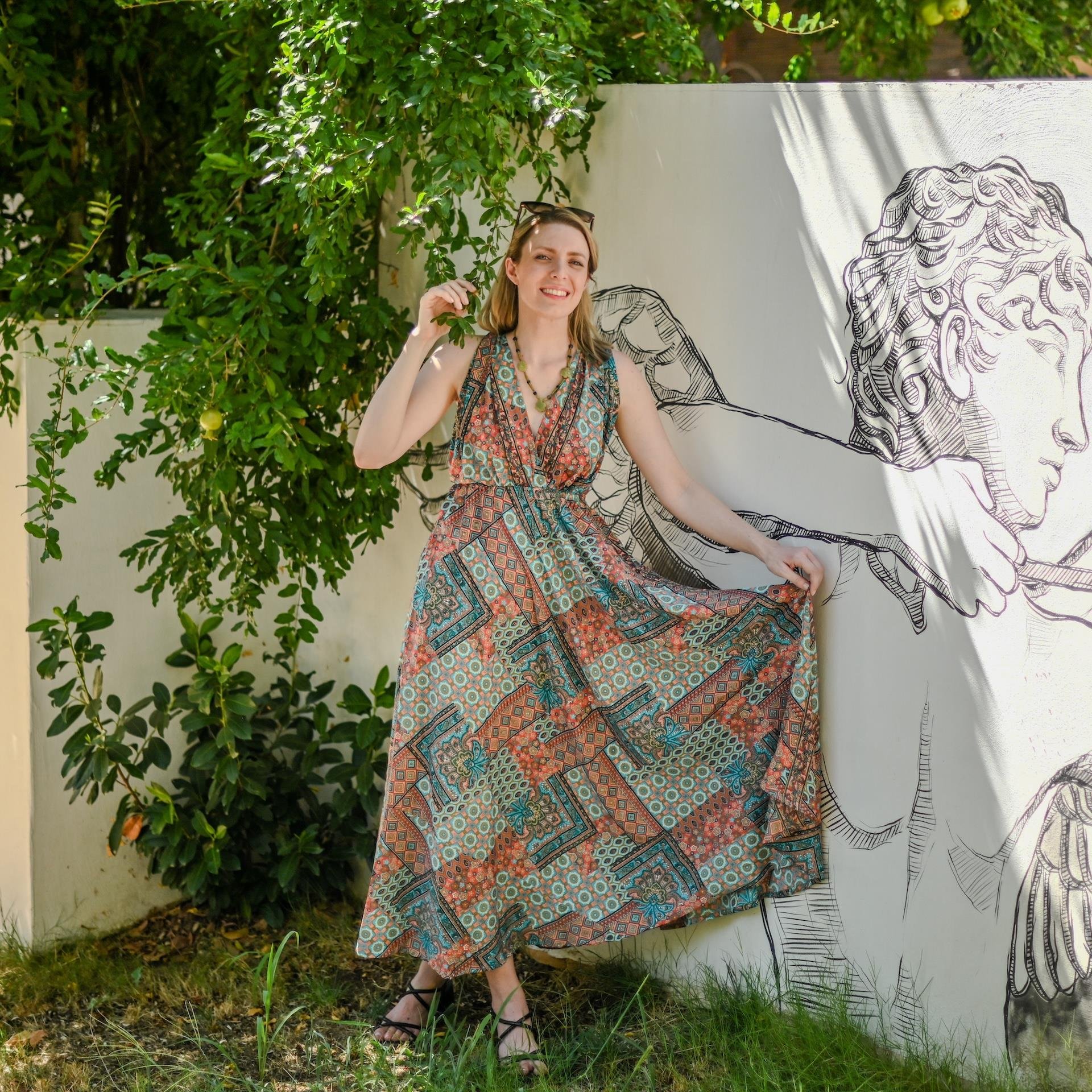 🌈✨ Criss-Cross Backless Multi-Color Pure Silk Dress